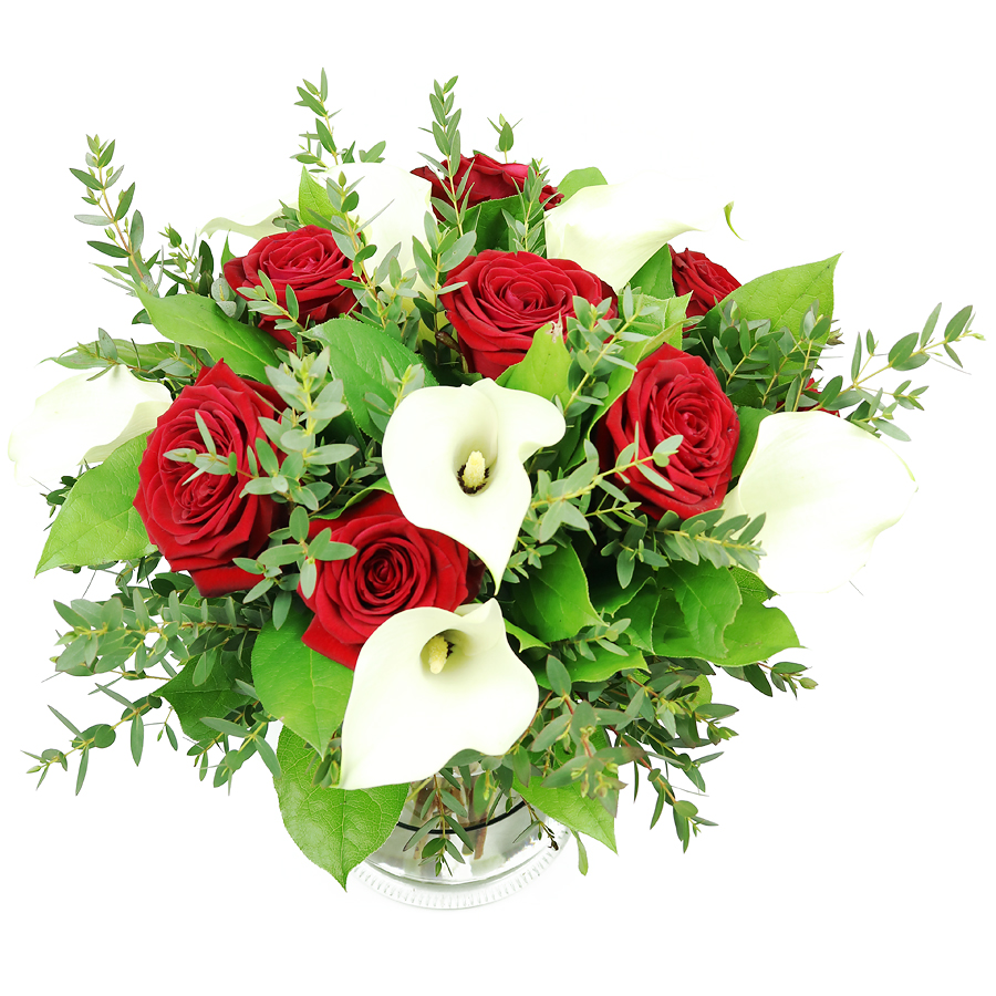 Received a breathtaking arrangement with vibrant red roses and pristine white lilies. Beautifully arranged.